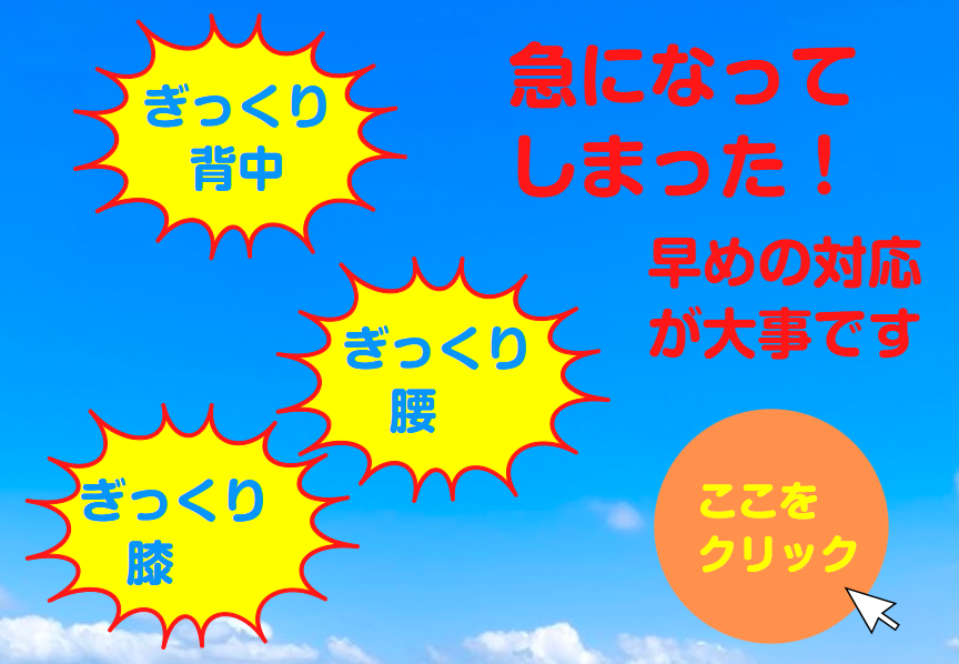 そのほか、交通事故や労働災害によるお怪我の施術、また姿勢 骨盤の調整などもお気軽にお電話、お問い合わせ、ご相談ください。
